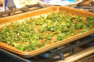 We are all totally digging kale chips. I know that I have blogged about kale before - but if you haven't gone out and bought a bag of cut kale, get in your car when you're finished reading this and buy yourself some kale. I've been buying the big bag of cut and washed Kale. I pour about 4 cups onto a cookie sheet - drizzle with olive oil and salt - and then bake at 350 degrees for about 15-20 minutes (I like mine really crispy). It's fabulous! Aside from the tiny little kale pieces showing off in my teeth, it's easy! (now if I could just get into the habit of checking my teeth before I start smiling at someone...I'd be better off. Side note - two years ago, I went to a Christmas party alone. Brooke was an infant, Champ was sick and Matt stayed home with the kids. I ate and laughed and smiled my way through the evening. It was the first time I had gotten dressed up since Brooke was born and I was feeling good! I got home and looked in the mirror and much to my horror, I had a big black bean plastered against my left front tooth - as if I was dressed up for Halloween or something. Why didn't anyone tell me? Better to tell than not to tell, folks - so now, if I ever notice something like that, I tell the person.). All that is to say, enjoy your kale but check your teeth.
